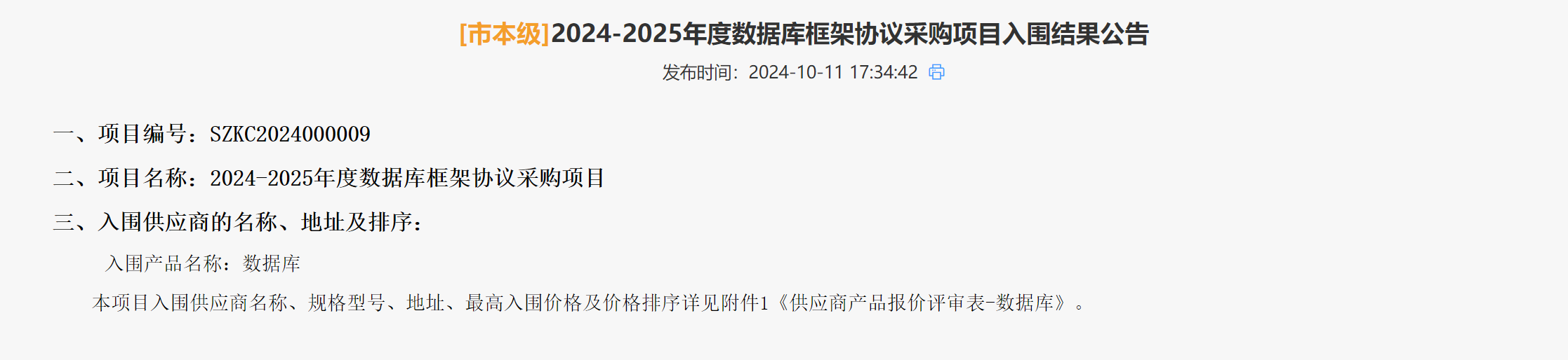 近日,深圳政府采購業(yè)務框架協(xié)議采購系統(tǒng)公布了《2024-2025年度數(shù)據庫框架協(xié)議采購項目》入圍結果公告,神通數(shù)據庫成功入圍。