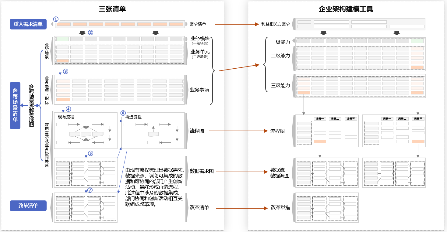 三、企業(yè)架構(gòu)建模與“三張清單”方法的對(duì)應(yīng)關(guān)系